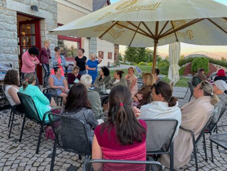 Letošní červnové počasí jako by si Bellisky přímo objednaly na svůj pravidelný terapeutický pobyt v Jizerských horách. Přestože se letos nemohl uskutečnit tradiční zimní pobyt s přednáškami pro Bellisky a jejich rodiny na Konopišti, odpočinek na chatě Tesanka vyšel díky příznivé epidemické situaci a dodržení všech podmínek pro pobyt (očkování, PCR test…). Poslední rok byl náročný pro všechny lidi, pro onkologické pacientky však obzvláště. Všechny proto uvítaly pětidenní relax v srdci českých hor a lesů.