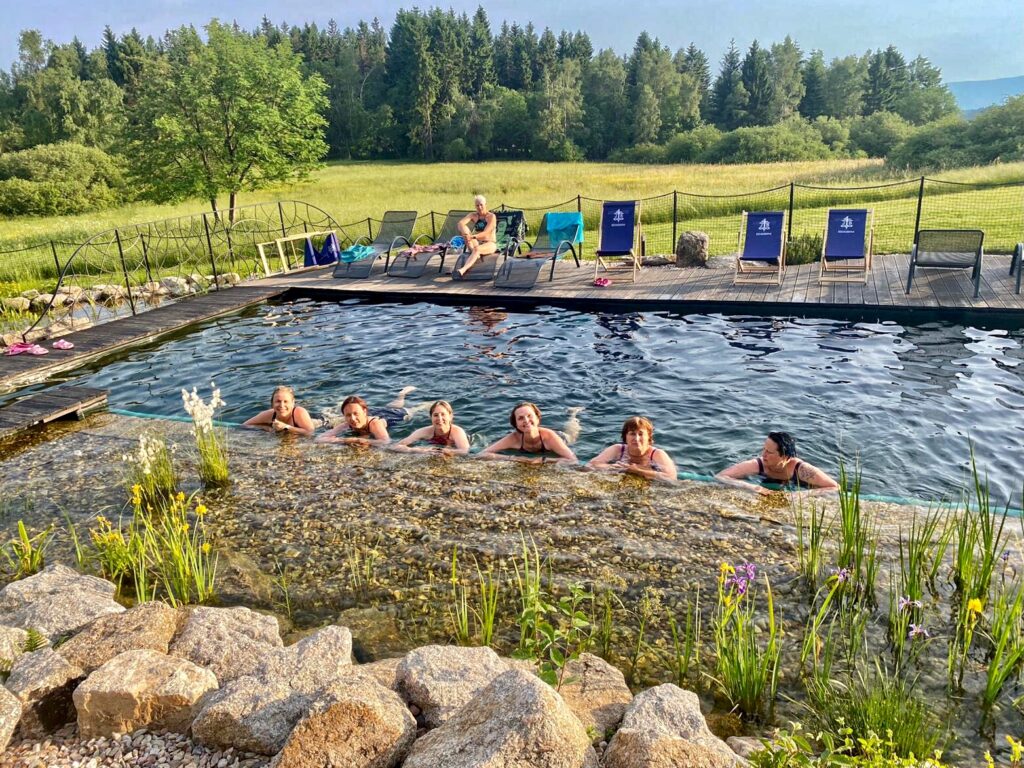 Přestože se letní pobyt nese převážně v relaxačním duchu, byl prostor i pro skupinovou psychoterapii nebo přednášku o zdravé výživě s MUDr. Hanou Štefaničovou. Právě strava je častým tématem pacientek s rakovinou prsu nejen kvůli podpoře zdraví, ale také kontrole váhy, která si vlivem léčby mnohdy dělá co chce (a většinou její čísla stoupají). I proto si mnohem Bellisek užilo krásné počasí aktivním odpočinkem – procházkami po místních lesích a loukách nebo výšlapem na nedaleký Ještěd. Odvážnější zkusily prohnat pérka elektrokolům a elektrokoloběžkám. Správné ochlazení se konalo v krásném biotopu chaty Tesanka. Namožené svaly si Bellisky mohly nechat promasírovat nebo zrelaxovat ve vířivce a místní sauně.